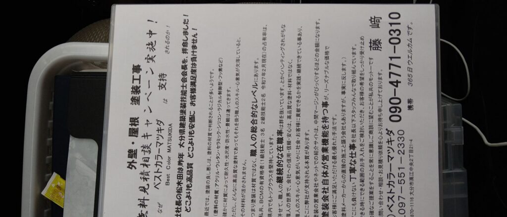 おはようございます!快晴です!今日は判田台でポスティングします。年末年始キャンペーン 30日 2日まだ対応出来ます!お問い合わせ心よりお待ちしております!藤﨑 09047710310 今日の写真は先日もご紹介しました 弊社が選ばれる理由の文面チラシです!