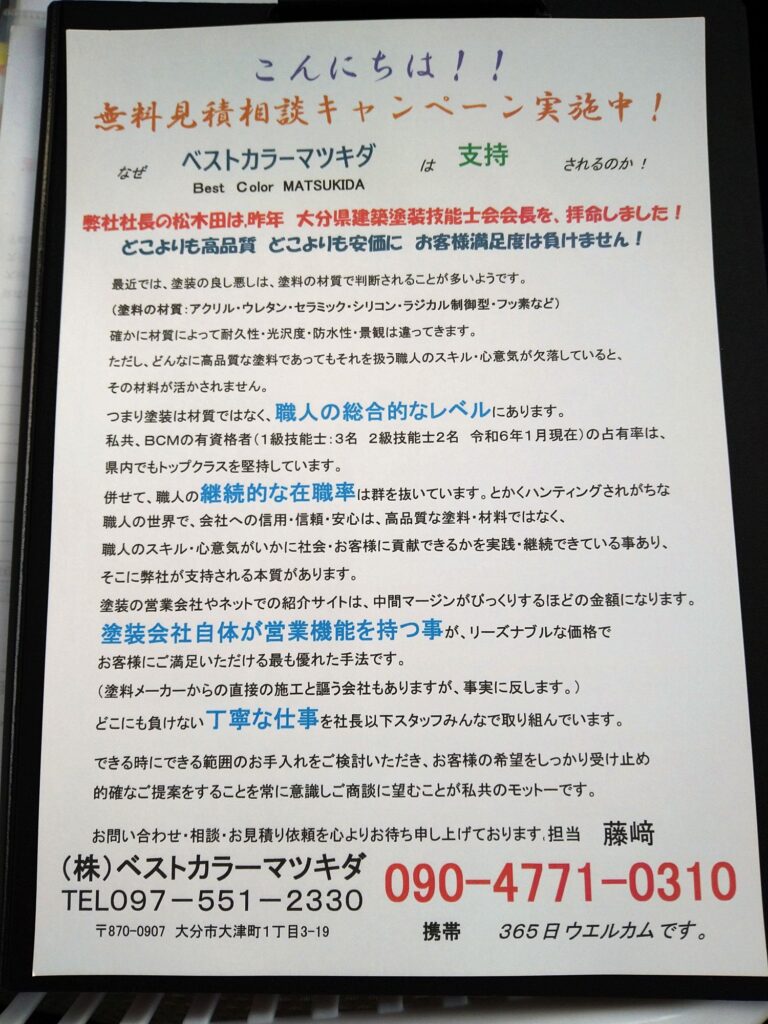 おはようございます!今日は 大分市関園地区で 無料見積相談キャンペーン実施中です!お問い合わせ心よりお待ちしております!